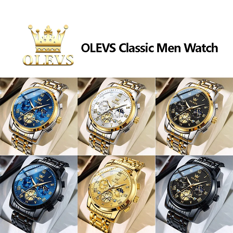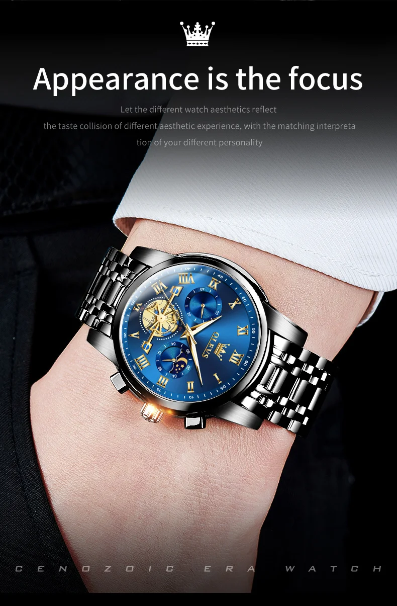 Feature: Shock Resistant,Luminous,Chronograph,Moon Phase,Water-Resistance,swim,Luminous Hands